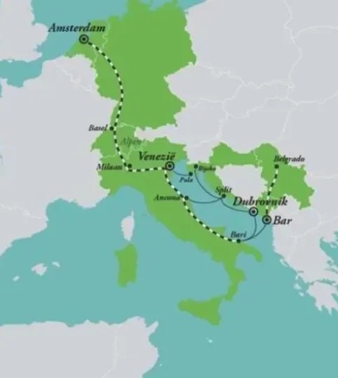 Montenegro has practically one railway line. This is, however, one of Europe’s most beautiful. The railway from the Serbian capital, Belgrade, to the Montenegrin port of Bar on the Adriatic Sea winds its way through mountains and gorges with impressive views. A beautiful nine-hour journey. But first, you have to get to Belgrade. A trip from the Netherlands to Montenegro takes about 48 to 60 hours. You first travel to Munich and then on to Belgrade. From Belgrade, you take the day or night train to Bar.